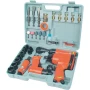 - 12,5 mm (1/2”) Druckluft-Schlagschrauber, prebacivanje između desnog/lijevog hoda, namještanje udarne snage regulacijskim vijkom, maks. zakretni moment: 320 Nm, potrošnja zraka: 140 l/min · Radni tlak: oko 6 bara. 12,5 mm (1/2”) Druckluft-Ratschenschrauber, prebacivanje između desnog/lijevog hoda, namještanje udarne snage regulacijskim vijkom, maks. zakretni moment: 68 Nm, potrošnja zraka: 110 l/min · Broj okretaja u praznom hodu: 150 U/min, radni tlak: oko 6 bara. Druckluft-Meißelhammer, namještanje udarne snage, potrošnja zraka: 110 l/min, podizajno dlijeto: 41 mm, radni tlak: oko 6 bara. Druckluft-Stabschleifer, regulacija broja okretaja, maks. broj okretaja: 25 000 U/min, potrošnja zraka: 110 l/min · Radni tlak: oko 6 bara · 3 dlijeta (plosnato, šiljato i odvojno dlijeto) · Opruga za tlačno dlijeto · 5 keramičkih brusnih klinova s 6-mm utorom · 5 adaptera za brzu izmjenu · Kutni odvijač, unutrašnji šesterokut · Brza spojka · 2 montažna ključa · Boca za prskanje ulja · 10 udarnih zakovica od krom-vanadijskog čelika:9/10/11/13/14/17/19/22/24/27 mm.