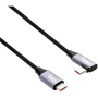 Kabel je opremljen kutnim USB Type-C konektorom i ravnim USB Type-C konektorom za veću fleksibilnost u korištenju. Konektor pod kutom omogućuje jednostavno spajanje uređaja, čak i na teško dostupnim mjestima, i smanjuje rizik od savijanja ili oštećenja kabela.