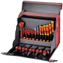 Izuzetno stabilno kućište od goveđe kože signalno crvene boje. Prednja ploča se može otvoriti i omogućuje brz pristup do 35 alata, koji su pohranjeni u džepovima iu podnožju. Iza seta alata nalaze se daljnji pretinci za zaštitne rukavice, NH ručku, dijagrame sklopova ili razne pisane dokumente. Torbica ima dvije brave koje se mogu zaključati i otvore na bočnim stranama za zakačenje remena za nošenje (podstavljeni remen za nošenje je također uključen). Sigurnosni alati BERNSTEIN izolirani su i pojedinačno ispitani prema VDE propisima IEC 60900 /EN 60900. Dvobojna, višeslojna izolacija čini oštećenje vanjske crvene izolacije odmah vidljivim kroz žutu izolaciju ispod. Prednost je jednostavna sigurnosna provjera koja se može izvršiti u bilo kojem trenutku.