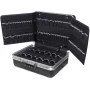 Kućište izrađeno od duboko izvučenih, otpornih na udarce, crnozrnih plastičnih školjki, prešanih čvrstim aluminijskim okvirom, otporno na prašinu i kišu, otporno na kiseline i ogrebotine. Jasno raspoređeni džepovi na pločama s alatima, koji se mogu ukloniti, sklopivi i zakretni dijelovi mogu se zaključati: Varijabilni ormarić za alat u kućištu! Čvrsti plastični umetak, visok 90 mm, sa 6 pregrada za promjenjivu podjelu odjeljaka nudi dovoljno prostora u kućištu za smještaj rezervnih dijelova, opreme za mjerenje i lemljenje. Džep za dokumente pričvršćen je na poklopac kućišta. Kućište ima 2 brave i može se zaključati.