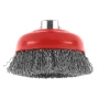 Lončasta četka – valovita žica. Prikladna za lake do srednje radove čišćenja na metalnim površinama srednje do velike veličine, na primjer za uklanjanje obloga, uklanjanje hrđe, čišćenje oplata i fasada, nahrapavljenje, matiranje, uklanjanje laka. Za sve kutne brusilice s navojem M 14. 100 mm, 0,5 mm, M14.