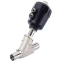 Ventil s kutnim sjedištem s vanjskim upravljanjem sastoji se od pneumatski upravljanog klipnog pogona i kućišta dvosmjernog ventila. Ovisno o temperaturi okoline, pogon je dostupan u dva različita materijala, PA i PPS. Dokazana, samopodešavajuća brtva vretena osigurava visoku nepropusnost. Protočno učinkovita kućišta 2/2-smjernog ventila izrađena od bronzirane bronze ili nehrđajućeg čelika za ulaganje omogućuju velike protoke. Ovi robusni ventili koji ne zahtijevaju održavanje mogu se naknadno opremiti opsežnim priborom za indikaciju položaja, ograničenje hoda ili ručni rad u nuždi.