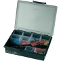 - 15 prstenastih kablova, svaki DIN 46237 0,5 - 1 mm², M4 · 15 prstenastih kablova, svaki DIN 46237 1,5 - 2,5 mm, M4 · 15 prstenastih kablova, svaki DIN 46237 1,5 - 2,5 mm², M5 · 15 prstenastih kablovskih nosača svaki DIN 46237 4 - 6 mm², M5 · 15 jezičaka svaki DIN 46245 1,5 - 2,5 mm², 6,3 x 0,8 mm · Svaka od 15 ravnih utičnica DIN 46245 4 - 6 mm², 6,3 x 0,8 mm · 15 posuda s noževima s ogrankom 1,5 - 2,5 mm², 6,3 x 0,8 mm · 15 ravnih konektora izoliranih 1,5 - 2,5 mm², 6,3 x 0,8 mm · 15 stražnjih konektora izoliranih 1,5 - 2,5 mm² · Klešta za stezanje 0,5 - 6 mm² s ovalnim prešanjem · Raaco asortiman kutija.