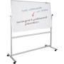 - Osnovna reverzibilna ploča s bijelom, lakiranom površinom za pisanje s obje strane Može biti označena markerima na bijeloj ploči sa suhom obrisom Magnetska površina za pisanje Visokokvalitetni aluminijski profilni okvir s plastičnim kutnim spojnicama za maksimalnu stabilnost Kuka za postavljanje flip-kartona sa stabilnim okvirom od aluminijskog profila s spremnikom od 30 cm za pribor Ručni okretni gumb za neprekidno učvršćivanje ploče u bilo kojem željenom položaju Četiri glatka kotača za maksimalnu pokretljivost, zaključavajuća za sigurno stajalište