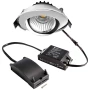 Ugradbeni stropni reflektori iz serije DIONE impresioniraju svojom posebno niskom dubinom ugradnje. Zbog toga vrlo štede prostor i zahtijevaju samo stropnu šupljinu od 25 mm. Priključna kutija uključena u isporuku i napajanje s mogućnošću prigušivanja također se uklapaju u izrez od 68 mm zahvaljujući svom kompaktnom dizajnu. Budući da su sve komponente za rad Dione unaprijed sastavljene, moguća je ugradnja bez alata koja štedi vrijeme. Priključna kutija s utičnim stezaljkama također omogućuje 3-polno prolazno ožičenje. To čini ugradbeni reflektor DIONE idealnim rješenjem za naknadnu ugradnju u sklopu renoviranja ili za nove instalacije s malo prostora za ugradnju. Uz visokokvalitetnu COB tehnologiju, ugradbeni reflektori mogu emitirati do 750 lm s izlaznom snagom od 8,5 W. Kućište je izrađeno od aluminija, kut snopa je 36°, a spotovi su dostupni u svijetlim bojama 3.000 K i 4.000 K. Glava svjetiljke se može zakretati do 30°.