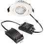 Ugradbeni stropni reflektori iz serije DIONE impresioniraju svojom posebno niskom dubinom ugradnje. Zbog toga vrlo štede prostor i zahtijevaju samo stropnu šupljinu od 25 mm. Priključna kutija uključena u isporuku i napajanje s mogućnošću prigušivanja također se uklapaju u izrez od 68 mm zahvaljujući svom kompaktnom dizajnu. Budući da su sve komponente za rad Dione unaprijed sastavljene, moguća je ugradnja bez alata koja štedi vrijeme. Priključna kutija s utičnim stezaljkama također omogućuje 3-polno prolazno ožičenje. To čini ugradbeni reflektor DIONE idealnim rješenjem za naknadnu ugradnju u sklopu renoviranja ili za nove instalacije s malo prostora za ugradnju. Uz visokokvalitetnu COB tehnologiju, ugradbeni reflektori mogu emitirati do 750 lm uz snagu od 8,5 W. Kućište je izrađeno od aluminija, kut snopa je 36°, a spotovi su dostupni u svijetlim bojama 3.000 K i 4.000 K. Glava svjetiljke se može zakretati do 30°.