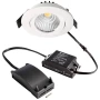 Ugradbeni stropni reflektori iz serije DIONE impresioniraju posebno niskom dubinom ugradnje. Zbog toga vrlo štede prostor i zahtijevaju samo stropnu šupljinu od 25 mm. Priključna kutija uključena u isporuku i napajanje s mogućnošću prigušivanja također se uklapaju u izrez od 68 mm zahvaljujući svom kompaktnom dizajnu. Budući da su sve komponente za rad Dione unaprijed sastavljene, moguća je ugradnja bez alata koja štedi vrijeme. Priključna kutija s utičnim stezaljkama također omogućuje 3-polno prolazno ožičenje. To čini ugradbeni reflektor DIONE idealnim rješenjem za naknadnu ugradnju u sklopu renoviranja ili za nove instalacije s malo prostora za ugradnju. Uz visokokvalitetnu COB tehnologiju, ugradbeni reflektori mogu emitirati do 750 lm uz snagu od 8,5 W. Kućište je izrađeno od aluminija, kut snopa je 36°, a spotovi su dostupni u svijetlim bojama 3.000 K i 4.000 K. Glava svjetiljke se može zakretati do 30°.