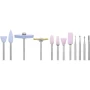 4 različita glodala 4 različita mjesta za brušenje 2 silikonska mjesta za brušenje silikonski disk Ø 17 mm i točak četke od mesinga od mesinga.