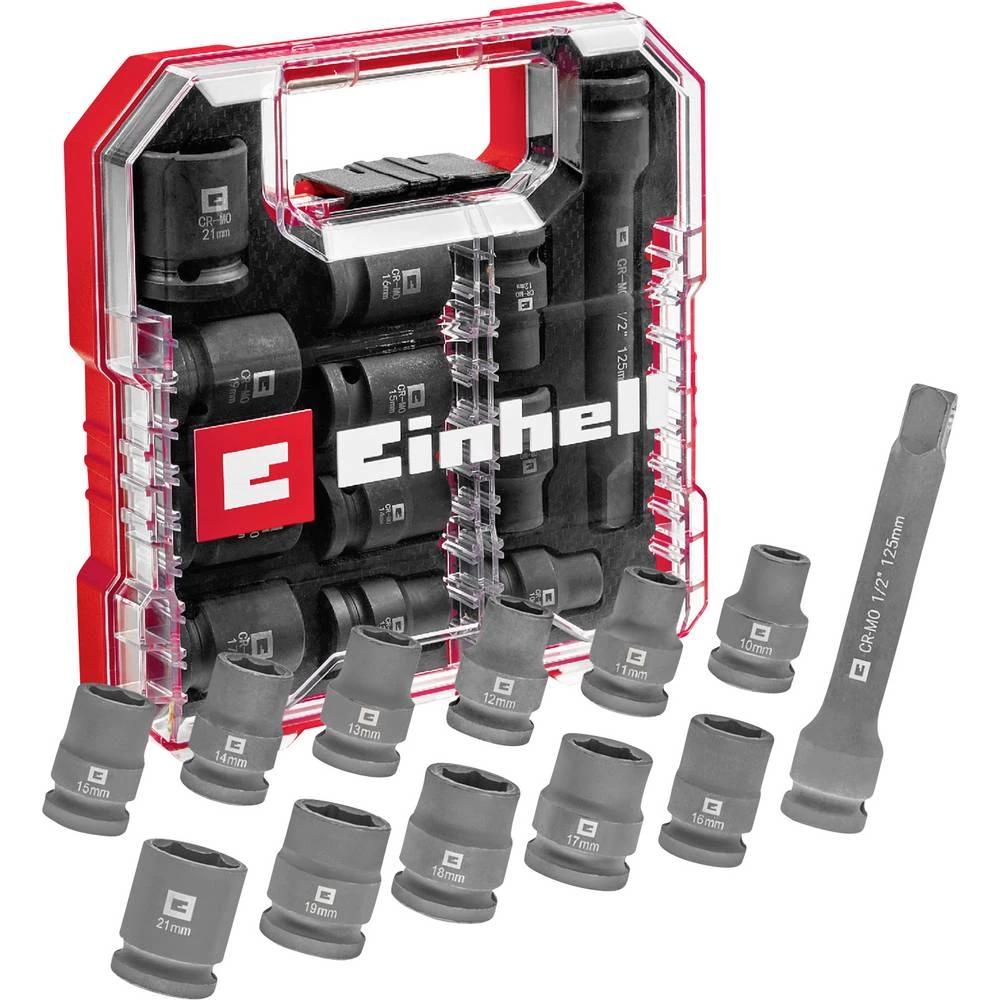 Einhell-ov set udarnih ključeva od 12 dijelova pouzdan je pomagač za automobilske radove, kao i za primjenu u industriji i obrtu. Izrađeni od manganom fosfatiranog CrMo čelika, nastavci mogu izdržati čak i najveće momente pritezanja i idealni su za zahtjevne zadatke. Šesterokutni nastavci pokrivaju uobičajene veličine od 10 do 21 mm i imaju jasno vidljivu oznaku za brzo pronalaženje prave veličine. Produžetak duljine 125 mm omogućuje pristup teško dostupnim vijcima, kao što su: B. u motornom prostoru ili na aluminijskim naplatcima. Set je kompatibilan sa svim standardnim račvama i udarnim ključevima s pogonom od 1/2". Pohranjen u robusnoj L-CASE futroli s EVA umetkom u karbonskom dizajnu, ne nudi samo zaštitu već i prozirno rješenje za pohranu. Za profesionalne mehaničare i entuzijaste "uradi sam" koji traže pouzdan alat, ovaj set je savršen izbor.