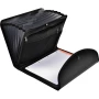 Mapa Exafolio inteligentno je rješenje za mobilni radni prostor, ekološko okruženje i izrađeno od trajnog materijala. Uključujući integrirani jastučić za pisanje u pokretu "natrag u crno". Vanjski ergonomski zahvaljujući zaobljenom dijelu leđa, također sigurno zatvaranje. Unutar 6-dijelnih pretinca, pisaći jastučić, unutarnji džepovi za CD-ove i posjetnice. i držač olovke. Boja: crna, ostalo: 6 komada, unutarnji džep, jastučić za pisanje.
