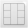 Bežična 6-kanalna tipka za pojedinačnu ugradnju 80x80x15mm ili ugradnju u sustav prekidača E-Design55. Vrlo tih i s baterijom (životni vijek 5-8 godina). Senzor pametne kuće.