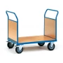 Kolica na platformi - nosivost 500 kg Nadgradnje: - 2 završna zida izrađena od drvenih ploča u bukovoj dekoraciji, H 500 mm - visina zida 500 mm. Područje za učitavanje: - Platforma na bazi drva u bukovom dekoru. Okvir: - Zavarena čelična konstrukcija - Površina premazana prahom - Trajna površinska zaštita, otporna na udarce i ogrebotine. Gume: - Kotači s gumenim gumama na gumenim čeličnim naplatcima - Okretni kotači s kočnicama. Ležajevi kotača: - Glavčina s valjkovim ležajevima.