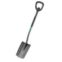 GARDENA ErgoLine teleskopska lopatica posebno je udoban uređaj za kopanje, podizanje, rahljenje i pomicanje tla. Ekstra široka, ergonomski oblikovana D-ručka može se uhvatiti bilo gdje s obje ruke za ugodan rad. Ovalni profil ručke sprječava nenamjerno okretanje ručke. Izduženi plastični premaz osigurava udobno, protuklizno i besprijekorno rukovanje. Visina ručke može se podesiti od 106 cm do 123 cm te se stoga može individualno prilagoditi vašoj veličini tijela. Posebno oštra lopatica izrađena je od kaljenog kvalitetnog čelika. Posebno velika stepenica s posebnim profilom jamči čvrsto prianjanje pri kopanju u tlo i služi za optimalan prijenos snage na lopaticu.