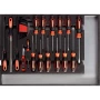 • 2K odvijač TX: nož izrađen od krom-molibdenskog čelika, kromiran, fosfatirani izlazni vrh, dvokomponentna ručka, 5-strana glava ručke, izdužena rupa u ručici