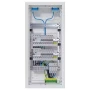 Sastoji se od: Plastične zidne kutije sa standardnom stezaljkom za kabele i klizačima za uvođenje kabela koji se izbijaju s uskočnim pričvršćivanjem, integriranom libelom i trakama za pričvršćivanje od pocinčanog čeličnog lima. Nosač opreme od pocinčanog čeličnog lima, gornje šine mogu se montirati pojedinačno izolirane. Poklopac uređaja od plastike s utorom za uređaj od 46 mm, brzo otpuštanje s rotacijom od 90°, standardno brtvljenje. Okretni okvir s vratima od čeličnog lima, praškasto lakiran i pečen, s 15 mm kompenzacije žbuke. Vrata, u ravnini s unutarnjim šarkama na ručni pogon. Brava za vrata s udubljenom ručkom s prednje strane i ručkom koja se automatski sklapa, šarke na vratima s desne ili lijeve strane bez rastavljanja okvira. Standardna shema spoja pričvršćivanje u vratima i integrirani bočni kanal za provođenje kabela sa stezaljkama za držanje kabela. PE/N terminal siguran za prste s plug-in tehnologijom u tehnologiji uskočenja koja se lako postavlja i N-stezaljkom za FI krugove kao standard.