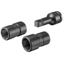 3-dijelni set uključujući nastavak 917S-3 za FORD modele B-Max ∙ C-Max ∙ EcoSport ∙ Fiesta ∙ Focus ∙ Grand C-Max ∙ KA ∙ Kuga ∙ Mondeo ∙ Puma ∙ Ranger ∙ Tourneo ∙ Transit ∙ S-Max ∙ Galaxy ∙ Transit ∙ Tourneo Connect ∙ Tourneo Custom ∙ Mustang. Alat za otpuštanje koji se može koristiti s obje strane za modele FORD. Ako kromirani poklopac nedostaje ili je deformiran, maticom kotača više se ne može upravljati standardnim umetkom nasadnog ključa. Rješenje: Dva umetka dvostrukih nasadnih ključeva umjesto četiri pojedinačna nasadna ključa. Aktivacija s 917S-3. Površina: fosfatirana, nauljena. Kvadrat prema DIN 3120.