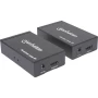 Manhattan 1080p HDMI preko IP Extender Set je idealno rješenje za spajanje gotovo bilo kojeg digitalnog HDMI izvora (PlayStation, Xbox, Blu-ray player, satelitski prijemnik, digitalni snimač itd.) Preko IP mreže i jednog mrežnog kabela s HD zaslonom ili HD projektor do 120 m za spajanje. Ovaj HMDI Extender komplet pruža pouzdani 1080p video i višekanalni audio prijenos na većim udaljenostima nego s HDMI kabelima. Osim toga, moduli odašiljača i prijamnika imaju dodatne 3,5 mm infracrvene (IR) priključke, koji omogućuju kontrolu izvora s mjesta prikaza.