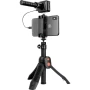 IRig Mic Video Bundle je sveobuhvatno rješenje za visokokvalitetne, senzacionalne videozapise i strujanje uživo na današnjim top web stranicama. Ovaj novi set pruža sve potrebne alate za stvaranje profesionalnih videozapisa koji se ističu iz mnoštva. Jezgra ovog paketa je iRig Mic Video: pričvršćen izravno na mobilni uređaj putem magnetskog sustava za škljocanje, idealan je mikrofon za video zapise, podcaste, intervjue, govore i još mnogo toga. Zlatno obložena kapsula za kondenzator elektrode daje kristalno čist zvuk u svakoj situaciji snimanja zahvaljujući dizajnu sačmarica i smanjuje pozadinsku buku na minimum. IRig Mic Video je stoga idealan za snimanje u bučnom okruženju, a ugrađeni EQ uvijek osigurava uravnoteženi zvuk. Integrirano audio sučelje ima 24bit / 96kHz pretvarač i koristi uključeni Lightning ili USB-C kabel za kontaktiranje iPhone, iPad, Android pametnih telefona i tableta. Oprema je zaokružena izlazom za slušalice koji omogućuje praćenje izravnog i obrađenog signala. IRig Mic Video kompatibilan je s bilo kojom aplikacijom koja snima zvuk. Opseg isporuke uključuje vjetrobransko staklo za fotografije na otvorenom, DSLR priključni kabel, nosač kamere i Lightning i USB kablove. Paket je dovršen pametnim iKlip Grip Pro stativom za mobilni telefon i mobilnim telefonom s odvojivim daljinskim upravljačem Bluetooth okidača.
