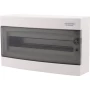 CIJELI OKRUGLI TALENT ZA NAJVEĆE POTRAŽNJE Kutije osigurača iz serije DISBOX-MA imaju IP40 stupanj zaštite i stoga su idealne za upotrebu u svim vrstama unutarnjih prostora. Površinski montirana kutija s osiguračima izrađena je od visokokvalitetnog akrilonitril-butadien-stirena (ABS) i stoga udovoljava zahtjevima za bezhalogena, UV stabilnost i ROHS i REACH sukladnost. Ukupno je u ovoj seriji dostupno 8 različitih veličina kućišta od 8 do 54 prostora za module. Svaka veličina kućišta može se dobiti s bijelim ili prozirnim vratima. Iako bijela vrata sprječavaju pogled na ugrađene komponente, prozirna vrata nude mogućnost vizualne provjere indikatorskih lampica ili statusa uređaja u bilo kojem trenutku. Kao nadzemni razdjelnik, ovaj dizajn nudi mogućnost ulaska kabela kroz stražnju stijenku kućišta. U tu svrhu na dnu kućišta predviđeni su različiti nokauti za lako izbijanje.