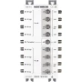 - Devet dualnih distributera (8 x satelitski IF i 1 x terr. Područje) u jednom kućištu pogodno za daljinsko napajanje putem ulaza - izlaz na prtljažniku (8 x Sat-ZF) i putem distribucijskog izlaznog horiza. nizak (odvajanje diode od izlaza prtljažnika); Izolacijski kondenzatori na ostalim distribucijskim izlazima