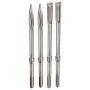 4-dijelni. Dlijeto sa SDS max RTec sadrži RTec dlijeta koja su savršena za razne betonske radove. Manje zapinjete i brže se krećete. Uvijeni, samooštreni vrh zašiljenog dlijeta s RTec Speed uklanja materijal na širem području od uobičajenih šiljastih dlijeta i omogućuje nesmetan rad. Za brz napredak u radu, ravno dlijeto RTec Sharp ima ojačavajući rebra koja ne stvaraju samo bočne, već i okomite pukotine u materijalu. To rezultira većom stopom uklanjanja materijala i sprječava zaglavljivanje dlijeta. Dlijeta su namijenjena za klesanje, rušenje i podešavanje betona i zida, kao i za otvaranje spojeva i izlaganje armatura. Kompatibilni su s čekićima za rušenje sa sustavom osovine SDS max. Patentirani RTec element nudi veću brzinu uklanjanja materijala od konvencionalnih dlijeta s SDS max. 4-dijelni. Dlijeto sa SDS max sastoji se od: 2 x šiljasta dlijeta s SDS max RTec brzinom (400 mm) 2 x ravna dlijeta s SDS max RTec Sharp (400 x 25 mm) Ukupna duljina mm: 400; 400; 400; 400, rub dlijeta mm: 25; 25-og