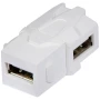 - Keystone s dvostrukom spojnicom USB 2.0 tip A, kutom od 90° s unutarnje strane, za spajanje kabela s USB utikačima položenim u zid