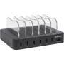 Manhattan 6-portna USB stanica za punjenje idealna je stanica za punjenje za USB uređaje. Pametni telefoni, tableti, Bluetooth slušalice, digitalni fotoaparati, kontroleri igara, e-čitači i još mnogo toga mogu se puniti na USB-A priključcima. Tanki uređaji, poput mobitela svih formata, također se mogu udobno pohraniti u integrirane razdjelnike. Umjesto da vam mnogi mali punjači blokiraju utičnice, imate jednu, dobro strukturiranu stanicu za punjenje. Izlazna struja od 2,4 A / 5 V po priključku i pametna IC tehnologija punjenja brzo osiguravaju pune baterije. Zaštita od prekomjernog punjenja, prenapona i pregrijavanja jamče beskompromisnu sigurnost uređaja.