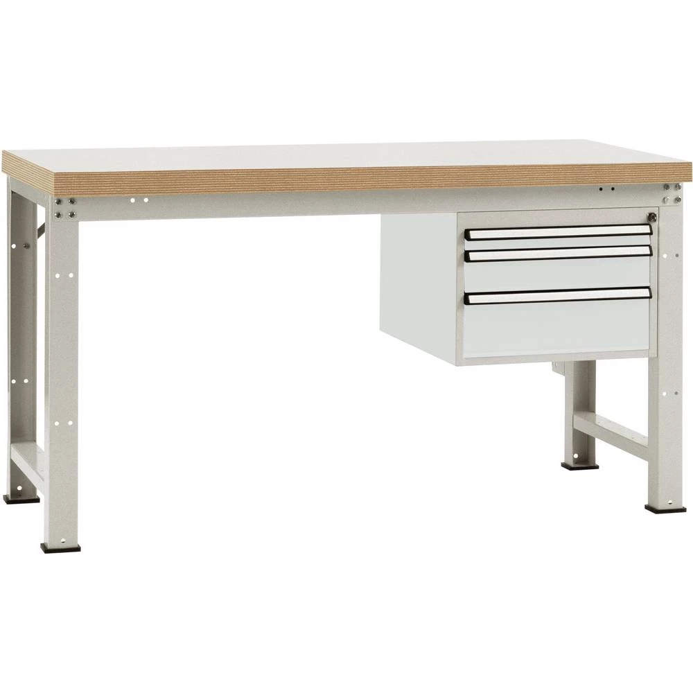 Uštedite si dugog traženja i mukotrpne montaže pojedinih dijelova radnog stola, iskoristite naše iskustvo! S PROFI radnim stolom u provjerenom i jeftinom asortimanu koji su sastavili naši stručnjaci, stvarate optimalnu osnovu za radno područje. PROFI radni stol može se koristiti kao pojedinačni ili kao serijski radni stol. Ovdje će svoje mjesto naći posebno rad s velikim mehaničkim naprezanjima, ali također se pomoću PROFI radnog stola mogu izvesti potpuno opremljene radne stanice za proizvodnju ili montažu zahvaljujući širokom rasponu dodatne opreme. Radni stol PROFI Standard u svijetlosivoj boji RAL 7035, širine 1500 mm i dubine 700 mm izuzetno je stabilan i izdržljiv zahvaljujući samonosivom čeličnom okviru. Visina je 800 mm plus radna ploča. Zbog vrlo velike nosivosti od 1800 kg (s ravnomjernom raspodjelom tereta), radni stol je idealno pogodan za velika mehanička opterećenja u proizvodnji ili montaži. Samonosivi okvir sastoji se od 2 okvira od čeličnog profila 60 x 60 mm i 2 stabilna okvira visine 60 mm, kao i gumene cipele (6 mm) za zaštitu podne obloge. Okvir je visokokvalitetno presvučen prahom u svijetlosivu boju RAL 7035. Poznati njemački kvalitetni proizvod! Ploča od masivnog bukovog radnog stola, debljine 40 mm, širine 1500 mm i dubine 700 mm, sastoji se od lamela tvrdog drveta (bukva, hrast, itd.) Spojenih prstima i ljepljenih šipkom, koje se bruse i površinski obrađuju na ekološki prihvatljiv način. Otporan je na habanje, udarce i udarce, vrlo je izdržljiv i otporan te zaštićen od vlage. Ploča od masivnog bukovog radnog stola pogodna je za profesionalnu uporabu s vrlo visokim mehaničkim naprezanjima u području montaže i proizvodnje.Kemijska otpornost. Opseg isporuke uključuje bazu kućišta s ladicama. Podkonstrukcija se koristi za inteligentan i uredan red na radnom mjestu. Ima širinu od 500 mm, dubinu od 580 mm i visinu od 360 mm. Kućište se sastoji od čvrsto ojačane konstrukcije od čeličnog lima, visokokvalitetnog praškastog premaza u svijetlosivu boju RAL 7035. Kućište može biti opterećeno do 200 kg. Kućište je opremljeno cilindričnom bravom i 2 ključa, kao i središnjom bravom. Kućište ima korisnu visinu od 300 mm, a sastoji se od 2 ladice s visinama panela 1 x 50 mm, 1 x 100 mm, 1 x 150 mm. Ladice se mogu izvući do 80%, a mogu se napuniti do 35 kg. Ladice su opremljene velikom šipkom ručke i dodatnom naljepnicom za označavanje ladica. Uz to, kućište je opremljeno jednom izvlačnom bravom. To sprječava nenamjerno, istovremeno otvaranje nekoliko ladica i na taj način smanjuje rizik od prignječenja i ozljeda.