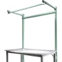 Građevinski portali radni stol čine samo u potpunosti razvijenom radnom mjestu. Radno područje iznad stola koristite za alate, uređaje ili rasvjetu na radnom mjestu. Ovo stvara jedinicu s kojom se može raditi učinkovito i ergonomsko. Portal za dodavanje s korisnom visinom od 1500 mm i ukupnom visinom od 2100 mm može se koristiti na svim radnim stolovima UNIVERSAL + PROFI Standard širine stola od 1750 mm i dubine stola od 800 mm. Portal za dodatnu konstrukciju sastoji se od konstrukcijskog stuba, poprečnog nosača stabilizatora, nosača šine i šine za postavljanje alata, opreme ili rasvjete na radno mjesto. Sivo-zeleni HF 0001 visokokvalitetni portal s praškastim slojem izrađen je od profilnog čelika perforiranog na tri strane u 30 mm rešetki. Koristi se za pričvršćivanje strukturnih komponenti poput perforiranih ploča, proreznih ploča, konzola za odlaganje itd. One se mogu prilagoditi po visini u koracima od 30 mm. Portal nadgradnje može se natovariti sa 120 kg. Tračnica nosača ima dubinu od 700 mm. S dubinom nosača od 350 mm, nosač se može puniti s 40 kg, a dubina nosača od 700 mm uz 25 kg. Portal nadgradnje ima korisnu visinu od 1500 mm, širinu sastavnog dijela od 1746 mm i dubinu od 55 mm. Pojedinačni građevinski stupovi imaju širinu od 60 mm (dimenzije uključuju okov za pričvršćivanje na okvire stola). OPREZ! Za dodatni portal potreban je osnovni portal (osnovni portal UNIVERSAL + PROFI Standardni broj proizvoda: ZB3871.0001).