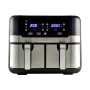 Doživite sljedeću razinu kulinarske izvrsnosti s našim Rocket Duo 900, 9L Airfryerom koji će revolucionirati vašu rutinu kuhanja. Sa svojim snažnim motorom od 2400 W i nizom izvanrednih značajki, Rocket Duo 900 je apsolutni must-have za svaku kuhinju. S podesivim termostatom, koji ima LED zaslon i zaslon osjetljiv na dodir, imate savršenu kontrolu nad svojom kuhinjom. Možete podesiti temperaturu između 40°C i 200°C kako biste postigli optimalne rezultate za različita jela. Bilo da pržite, pečete, pržite ili zagrijavate, ova friteza na vrući zrak jamči dosljedne i ukusne rezultate svaki put. Vrijeme kuhanja može se individualno podesiti pomoću podesivog mjerača vremena, koji se može postaviti između 0 i 60 minuta. Čišćenje je vrlo jednostavno zahvaljujući 2 uklonjive posude s visokokvalitetnim neprijanjajućim premazom. Više ne morate brinuti da će se hrana zalijepiti ili ostaviti ostatke. Hladno tijelo na dodir i ručka zajedno sa sustavom zaštite od pregrijavanja osiguravaju vašu sigurnost tijekom kuhanja. Usvojite zdraviji način života bez žrtvovanja udobnosti ili okusa. Naša zračna friteza Rocket Duo 900 koristi mnogo manje ulja i smanjuje potrošnju kalorija za impresivnih 85%. Od hrskavih krumpirića do ukusnih rebarca, sočnih škampi ili ukusnih peciva, naše 11-u-1 funkcije kuhanja pokrivaju širok raspon jela.