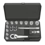 Set utičnih ključa ECO 6,3 mm (1/4 "), 18 komada. U čvrstom kućištu od čeličnog lima, izdržljive kvalitete, crno prašno. S crnim uloškom od mekane pjene MTS. Otporan je na ulja i masti. Nema više zveckanja. Inch dimenzije. Sadržaj: poluga reverzibilna remenica. Produžetak 100 mm Univerzalni zglob. Umetnuti ključevi utora: 1/8 - 5/32 - 3/16 - 7/32 - 1/4 - 9/32 - 5/16 - 11/32 - 3/8 - 7/16 - 1/2 "AF , Bitovi odvijača 4 - 7 x 32 mm. Phillips odvijači bitovi PH 1 - PH 2 x 32 mm. Napravljen od kromiranog vanadij čelika. Svi utični ključevi sa zaštitnim slojem SuperChrom za finiju površinsku obradu i jaku otpornost na oštećenja, ogrebotine itd. Sa SmartDrive profilom koji štiti glave vijka i matica, jer se snaga prenosi na bokove, a ne na uglove.