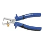 Kliješta za skidanje izolacije. Za skidanje jednostrukih, višeslojnih i sitno navezanih vodiča sa standardnom izolacijom. S reznim rubom u obliku slova V za žice i pramenove do max. Ø presjeka vodiča 5 mm ili 10 mm². Pomoću vijka za podešavanje za jednostavno podešavanje željenog promjera žice ili žice. Poboljšana geometrija rezanja za jednostavno rezanje i duži vijek alata. S oprugom otvaranja. S 2-komponentnom ručkom s ergonomskim oblikovanjem.