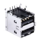Universal Serial Bus (USB) Shielded I/O Receptacle, Right-Angle, Dual Stacked, Type A, 0.76µm Gold (Au) Plating, Black Housing, with 4 Beveled Metal Pins, Lead-Free