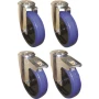 Jednostavno za sastavljanje s velikim plastičnim kotačima za lakši transport. 4 kotača Ø 100 mm s 2 kočnice, uključujući pričvrsni materijal za pričvršćivanje na noge.