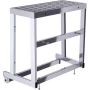 Svestrana konstrukcija u zavarenom dizajnu s pravokutnim cjevastim šipkama od aluminija. Koraci na ploči od aluminijske provjere. Dimenzije koraka: 555 x 250 mm. Plastične cipele na šanku završavaju. Osnovni modul može se pojedinačno proširiti dodatnim modulom. Modul za proširenje može se koristiti samo zajedno s osnovnim modulom. Jednostavna montaža. Upute su uključene. Valjci su dostupni kao dodatna oprema za promjenu mjesta, a podni nosači nisu neophodni za stacionarnu upotrebu.