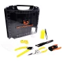 Kutija s alatom za optička vlakna kombinira sve korake za obradu optičkih vlakana u jednom kompaktnom setu. Rezač labavih cijevi Miller MB06-7000 dostupan je za skidanje vanjskog omotača s kapka ili mikro/mini puhanih kabela za debljine vanjskog omotača do 6,4 mm i funkciju uzdužnog proreza. Isprobanim Millerovim kliještima skida se 3 mm zaštitnog premaza i 900 μm sekundarnog premaza. Precizni skidač optičkih vlakana NetPeppers OFS31 koristi se za skidanje primarnog premaza od 250 μm. Osim škarica za skidanje kevlarske pletenice, u sklopu isporuke su i krpice te alkoholni raspršivač za čišćenje vlakana prije montaže. Pinceta i spremnik za odlaganje ostataka vlakana koji se može zatvoriti osiguravaju sigurnost tijekom obrade. Na kraju procesa montaže, instalacija se može provjeriti radi grešaka pomoću izvora vidljivog laserskog svjetla VLP50.