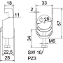 Stezaljka s U-nogom, metalna tlačna posuda sa zaobljenim rubovima za zaštitu kabela. Za vertikalnu i horizontalnu montažu 1 pojedinačnog kabela na C-profilnu šinu. Za širinu proreza 18 - 22 mm. S vijkom za 1 start na tlačnoj posudi, univerzalna šesterokutna glava vijka SW10, s utorom i križnim utorom. Pogodan za unutarnju i vanjsku montažu. Preporuča se korištenje kontra ladice.