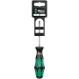 Kvalitetni odvijač Kraftform Plus. Višekomponentna Kraftform Plus ručka za ugodan ergonomski rad, čime se izbjegavaju žuljevi i žuljevi. Područja tvrdog zahvata za visoku radnu brzinu, dok meka područja prianjanja jamče visok prijenos okretnog momenta. Vrh Wera Lasertip odvijača je mikroskopski hrapav s laserskim zrakama. Ova gruba površina doslovno "ugrize" glavu vijka. Slučajno klizanje je stvar prošlosti. Alat za pronalaženje alata "Take it easy" s kodiranjem boja u skladu s profilima i oznakom veličine - za jednostavno i brzo pronalaženje potrebnog alata. Šesterokutni štitnik valjka sprječava dosadne valjanje na radnom mjestu.