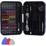 - Kompletan set alata je uredan i pregledno raspoređen u čvrstoj maloj kutiji s mehanizmom za zaključavanje, magnetizatorom/demagnetizatorom i 18 odjeljaka za pohranu