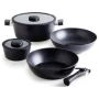- Set posuđa od 5 komada: uključuje dva lonca (16 cm i 28 cm), jednu tavu (28 cm), jedan wok (28 cm) i ručku koja se može skinuti