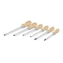 Komplet odvijača 6 kom. Drveni odvijač s kontinuiranom oštricom i upečatljivom pločom. Sve važne veličine u jednoj rečenici. Postavite u praktičnu, prozirnu kutiju od polipropilena: čvrsto pakiranje, koje se može slagati i spremiti, ponovo zatvoriti, višekratno koristiti. Sadržaj: Utor: 0,8 - 1,0 - 1,2 - 1,6, Phillips: PH1, PH2.