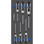 MTS-R / V (570x390 mm): Heksalobularni odvijač. Dvobojni MTS uložak sa 6 komada. Set odvijača. Odvijač s dvokomponentnom ručkom. Otporan na udarce. Bez iverja. Izolacijski. Otporan na ulje i otapala. Otporan na toplinu i usporava plamen. Otporan na svjetlost. Područje primjene -35 ° C do + 70 ° C. Lopatice izrađene od visokolegiranog molibden-vanadijuma ili krom-vanadijumskog čelika, kromirane s poliranim vrhom. Pogodno za kolica za radionice RATIO i VARIO, s praznim modulima i za QUADRO. Sadržaj: T10 - T15 - T20 - T25 - T30 - T40.
