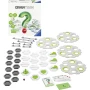 - Uz 30 kartica sa zadacima, 3 prekidača, 2 mete i mnoge druge građevne blokove, djeca se na kreativan način upoznaju s izgradnjom staze za klikere.