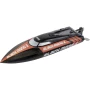Zahvaljujući snažnom, vodeno hlađenom trkačkom motoru bez četkica, dva dvostruka plastična propelera ubrzavaju ovaj trkaći brod elegantnom grafikom do 45 km / h. Digitalni dvokanalni radio sustav Black Mono X V2 omogućuje brze vodene utrke i fantastičnu zabavu u vožnji u radijusu do 200 metara. Oprema uključuje vodonepropusni servo pogon, reverzibilne peraje i ukrasne šipke izrađene od nehrđajućeg čelika i pogon sa osovinom savitljivog kabela debljine 3 mm. Samo kormilo izrađeno je od čvrste legure aluminija. Samoravnanje i automatski povratak u položaj olakšavaju rukovanje, a isporučeni stalak za brod osigurava sigurnu udaljenost od ploče stola, radnog stola ili poda za vrijeme održavanja ili prilikom pripreme za sljedeće putovanje, tako da sustav kormila i propeler ne mogu biti oštećeni . Preporučena minimalna dob: 14 godina