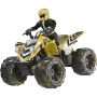 U zatvorenom ili na otvorenom - vožnja Race Quad-om spremnim za trčanje posebno je zabavna na neravnim terenima. Trkaći quad 1:10 opremljen je velikim gumama, opružnim prednjim kotačima, snažnim elektromotorom i 2-kanalnim daljinskim upravljačem od 27 MHz i nudi najbolje držanje ceste i lako upravljanje u svakoj situaciji.