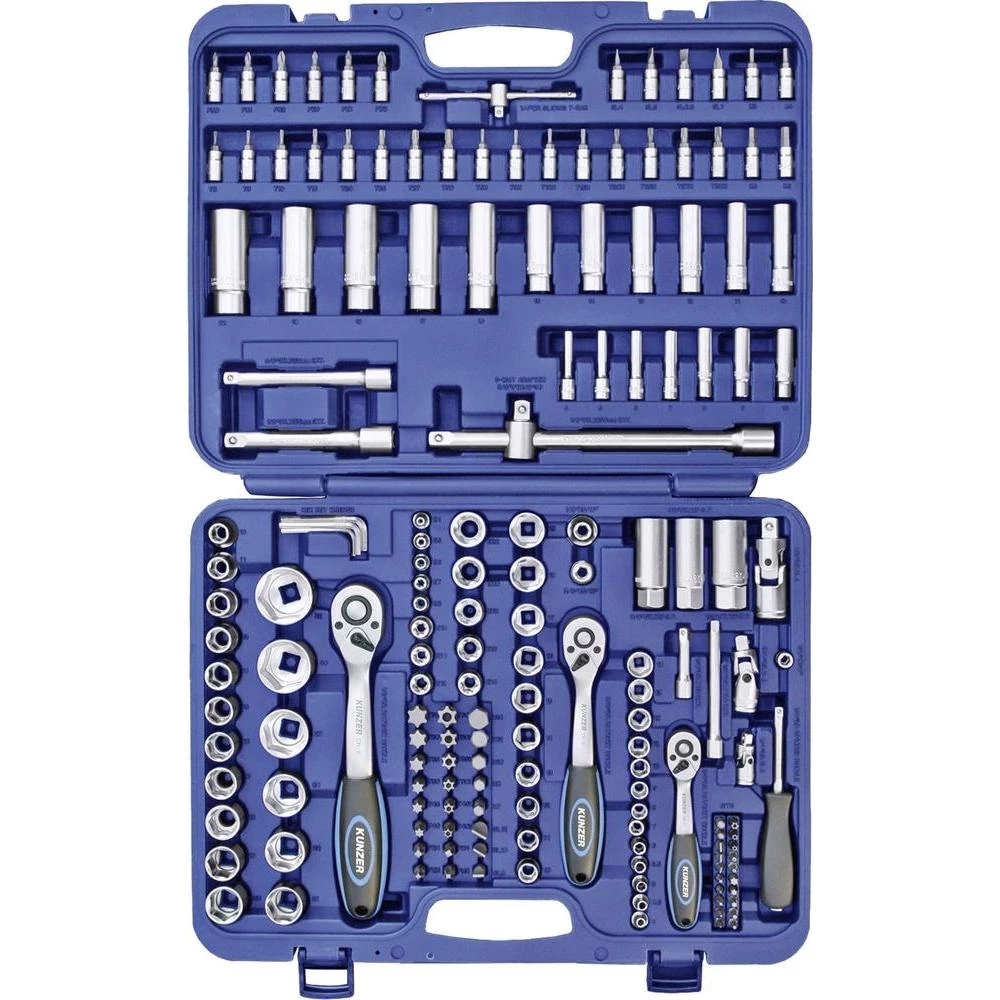 Sastoji se od: 1/4 "pogona: koljenasto poluga s brzim otpuštanjem s 72 zuba umetača ključa 4 - 4,5 - 5 - 5,5 - 6 - 7 - 8 - 9 - 10 - 11 - 12 - 13 - 14 mm, E4 - E5 - E6 - E7 - E8 Izuzetno duboke utičnice 4 - 5 - 6 - 7 - 8 - 9 - 10 mm Šesterokutni odvijači: 3 - 4 - 5 - 6 mm Phillips PHlips - PH1 - PH2 Pozidriv PZ0 - PZ1 - PZ2 TX profil T8 - T9 - T10 - T15 - T20 - T25 - T27 - T30 TX profil s rupom za lice: T8H - T9H - T10H - T15H - T20H– T25H - T27H - T30H utor 4 - 5 - 6.5 - 7 mm produžeci 50 mm, klizna ručica 100 mm 110 mm okretna ručica 150 mm bitni adapter univerzalni zglobni pogon 3/8 ": okretna okretna radilica s brzim otpuštanjem s 72 zuba umetača ključa 10 - 11 - 12 - 13 - 14 - 15 - 16 - 17 - 18 - 19 mm, E10 - E11 - E12 - E14 - E16 - E18 Izuzetno dubok plug Ključni umeci 10 - 11 - 12 - 13 - 14 - 15 mm Umetanje svjećice 18 mm produžetak 125 mm bitni adapter univerzalni zglob 1/2 “: okretni reverzibilni remen s brzim otpuštanjem sa 72 zuba umetača utičnice 10 - 11 - 12 - 13 - 14 - 15 - 16 - 17 - 18 - 19 - 20 - 21 - 22 - 24 - 27 - 30 - 32 mm, E20 - E22 Umeci za ključeve s dubokim utikačem 16 - 17 - 18 - 19 - 22 mm Umetanje svjećice 16 mm, 21 mm produžetak s kliznom ručicom 250 mm produžetak 125 mm bit adapter univerzalni spoj ostali Allen ključ 1,27 - 1,5 - 2 - 2,5 - 3 - 4 - 5 mm bit odvijača 8 mm, dužina 30 mm šesterokutna utičnica 7 - 8 - 10 - 12 - 14 mm Phillips PH3 - PH4 Pozidriv PZ3 - PZ4 TX profil T40 - T45 - T50 - T55 - T60 - T70 TX profil sa prednjom rupom T40H - T45H - T50H - T55H - T60H - T70H utor 8 - 10 - 12 mm odvijač, bit 8 mm, dužina 25 mm Phillips PH0 - PH1 - PH2 Pozidriv PZ1 - PZ2 TX profil T10 - T15 - T20 - T25 - T30 TX profil s rupom za lice T10H - T15H - T20H - T25H - T30H utor 4 - 5,5 - 6,5 mm više zub M5 - M6
