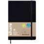 Bilježnica A5 crna s mekim tvrdim koricama. 192 lista krem bijelog papira s najmanje 15% jabučnih sastojaka, 80 g/m², prazan. Sadrži 16 perforiranih listova za jednostavno trganje. Visokokvalitetni omot s izgledom kože, sastoji se od najmanje 35% komponenti jabuke. S koncem za čitanje i elastičnom trakom za zatvaranje. Za dnevnu organizaciju kod kuće ili na poslu. Prazne stranice nude potpunu slobodu dizajna.