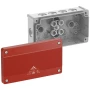 Razvodna kutija, s klasom zaštite IP66, nominalni presjek 2,5 mm², certificirana prema VDE (DIN EN 60670-1/-22 (VDE 0606-1/-22)), DLG (otpornost na amonijak), samobrtvljenje, mekane ulazne membrane , M20, područje brtvljenja 4 - 16 mm, (2 straga, 10 bočno), unutarnje montažne točke, za standardne instalacije u zatvorenim i zaštićenim vanjskim prostorima, siva, Ui=1000 V AC, s crvenim poklopcem, bez stezaljki, za identifikaciju sigurnosne rasvjete sklopovi.