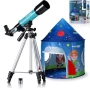 S teleskopom s lećama BRESSER JUNIOR 50/360 i šatorom možete započeti svoje uzbudljivo putovanje otkrivanja noćnog neba iz vlastitog malog astro kutka u dječjoj sobi. Akromatski refraktorski teleskop može se postaviti u tren oka i spreman je za vaša prva astronomska promatranja. Azimutalni nosač čini rukovanje dječjom igrom: jednostavno pomičite lijevo i desno, gore i dolje, dok se vaš ciljni objekt ne pojavi u vidnom polju. S lakoćom istražite nebeske privlačnosti uz dječji teleskop. Radujte se uzbudljivim pogledima na mjesečevu površinu, poznatu Orionovu maglicu ili impresivne Plejade. S okularima uključenim u astro set, možete se diviti ovim i mnogim drugim astronomskim objektima u povećanju od 18x i 60x. Dijagonalno zrcalo uvijek pruža ugodan pogled pri promatranju neba, jer vam omogućuje da udobno gledate u teleskop svoje djece odozgo. Dječji teleskop - s astro šatorom za uzbudljive avanture Brzo sastavljen u samo nekoliko koraka, šik šator u obiteljskom izgledu BRESSER osigurava pravu atmosferu za vaša istraživanja svemira. Flora, Lukas i Luna raduju se uzbudljivim trenucima s vama u vašem novom hobiju. S veličinom od 100 x 100 x 130 cm, šator također nudi dovoljno prostora za dvoje ljudi da planiraju svoja sljedeća promatranja s prijateljem. Zahvaljujući dva okrugla prozora, iz čvrstog šatora uvijek možete paziti na okolinu. Izvrsna zabava za male početnike u astronomiji: sami istražite čuda svemira uz obitelj BRESSER i teleskop BRESSER JUNIOR sa šatorom. ZNAČAJKE Teleskop za djecu od 8 i više godina Dizajn: Akromatski refraktor Jednostavan za rukovanje zahvaljujući azimutnom nosaču Promjer leće: 50 mm Žarišna duljina: 360 mm Povećanje: 18x i 60x Dijagonalno zrcalo za udobno gledanje i uspravnu sliku Uključuje šator u BRESSER Family Astro izgled (samo za upotrebu Prikladno za unutarnju upotrebu) OPSEG ISPORUKE Stativ za teleskop s azimutalnim nosačem Dijagonalno zrcalo 2 okulara (20 mm; 6 mm) Upute za uporabu šatora