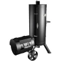 - RäucherkammerCenser približno 103,8 x 45,4 cm Ø 4 kromirane rešetke za kuhanje, svaka približno 43 cm Ø čelična vrata s 2 zasuna, metalnom ručkom i termometromSeiten-BrennkammerPovršina za roštiljanje: približno 41,2 x 38,8 cm 2 emajlirane rešetke za roštilj, svaka približno 20,6 x 38,8 cm čeličnog poklopca s metalnom ručkom Ognjište oko 48,1 x 40,7 cm rešetka od ugljena približno 41,2 x 27 cm Kapacitet ugljena max. Kuka za vješanje od 2 kg u kadionici Podesivi dovod zraka S poklopcem za dimnjak Može se pomicati kroz velike čelične kotače Uključujući pribor za pušenje (udica za ribu, rešetka za ribe, zdjela za usitnjene komade) Boja otporna na toplinu do max. 500 ° C